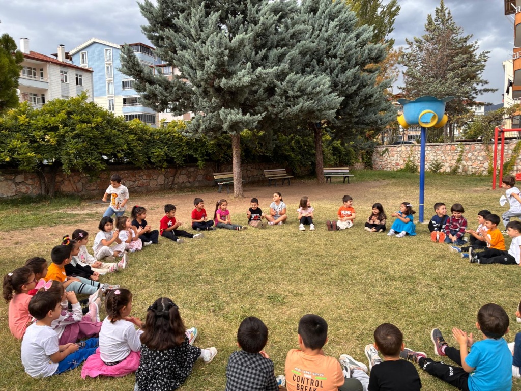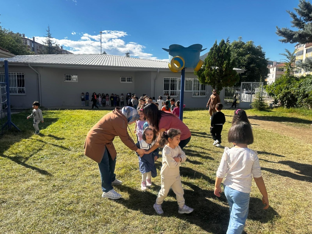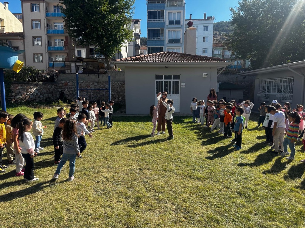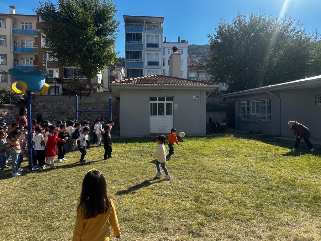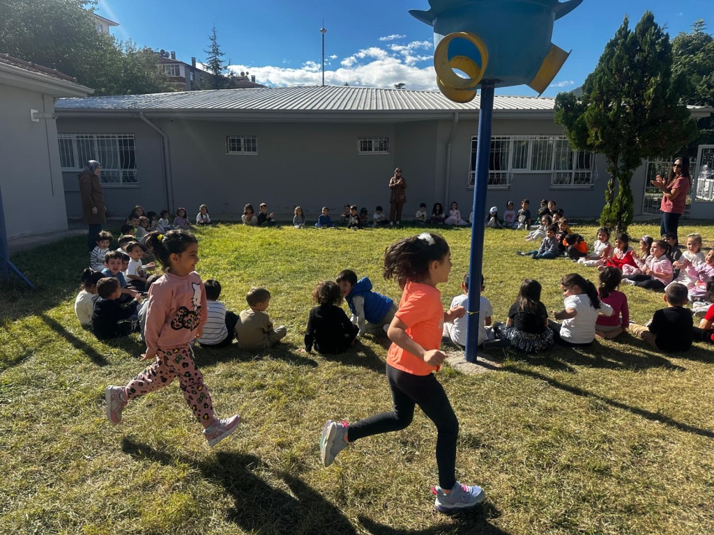 Okul Öncesi Farkındalık Çalışmları kapsamında öğretmen ve öğrencilerimiz Aç kapıyı bezirgan başı, Yağ satarım bal satarım, Yakan top ve Mendil kapmaca çocuk oyunlarını oynadılar.